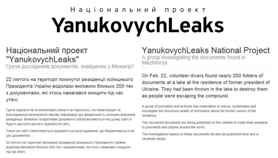 Група журналістів та волонтерів узялася за порятунок, систематизацію та розслідування величезного масиву інформації про фіндіяльність колишніх власників резиденції. Виявлені та врятовані документи публікуватимуться на цьому сайті й будуть доступні для всіх журналістів світу.» - сказано у відозві творців сайту.