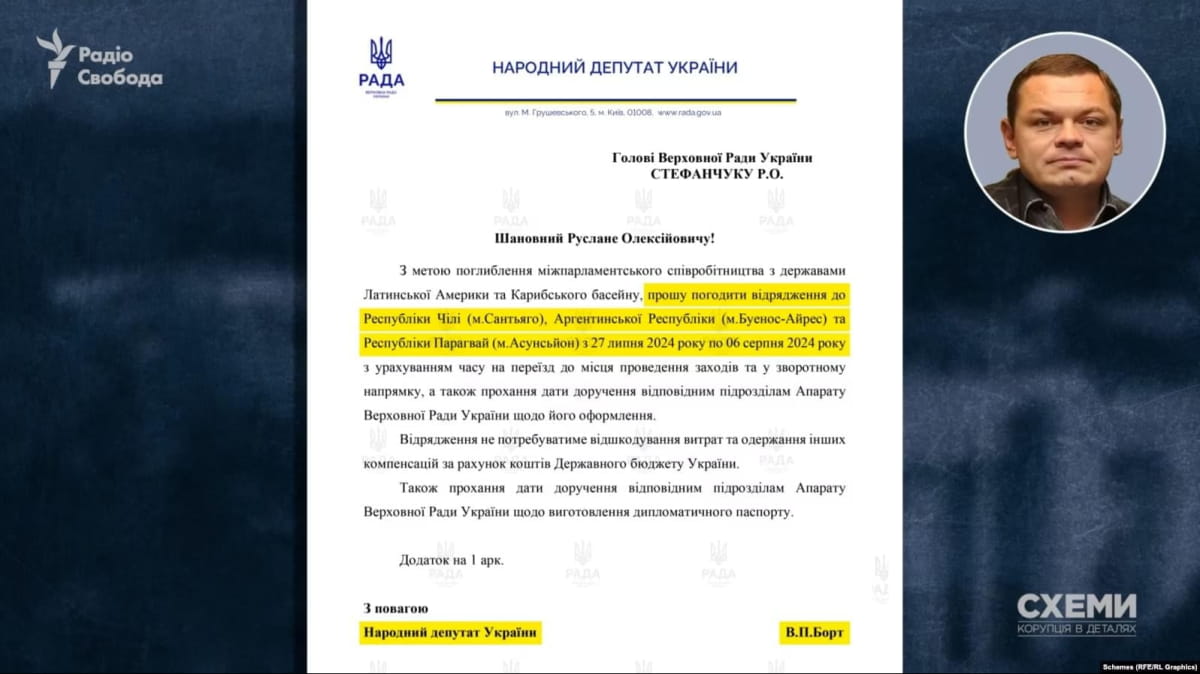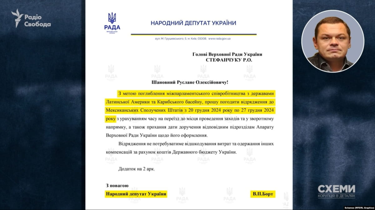 Журналісти встановили, що у 2024–2026 роках депутат неодноразово виїжджав до країн Північної, Центральної та Південної Америки, однак фактично перебував у США. Зокрема, під час "відрядження" до Мексики у грудні 2024 року Борт так і не дістався до країни призначення – натомість одразу прилетів до Маямі, де пробув близько десяти днів.