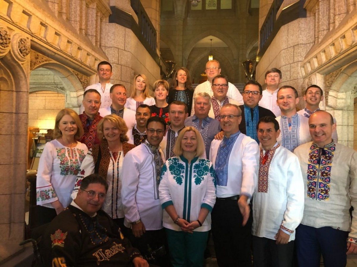 Депутати парламенту Канади вбралися у вишиванки з нагоди візиту до Оттави української парламентської делегації. Як повідомляє "Укрінформ", окрім депутатів український національний костюм одягла і міністр міжнародного розвитку Канади Марі-Клод Бібо.