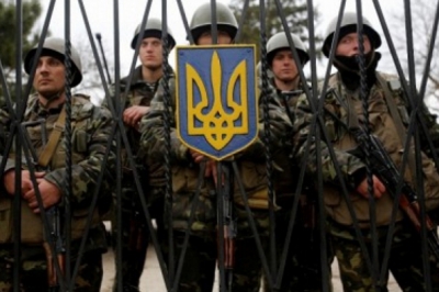 В МВС заявляють, що неподалік від кордону з Кримським півостровом в Херсонській області офіцерів, прапорщиків, сержантів і солдатів строкової служби зустрічали з почестями і військовим оркестром.