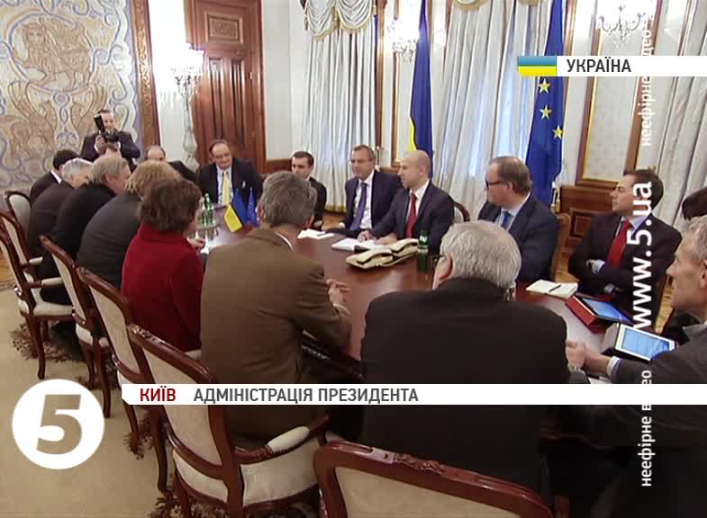 Сьогодні члени делегації обговорили шляхи стабілізації внутрішньополітичної ситуації в Україні з главою адміністрації президента Андрієм Клюєвим. Сторони погодилися, що вирішити конфлікт можна завдяки компромісу та діалогу між його учасниками. За словами Клюєва, сьогодні головне завдання влади та опозиції – заспокоїти суспільство і припинити протистояння. Після цього, каже Клюєв, Україна має продовжити процес євроінтеграції. Своєю чергою іноземні гості висловили готовність сприяти мирному врегулюванню ситуації.