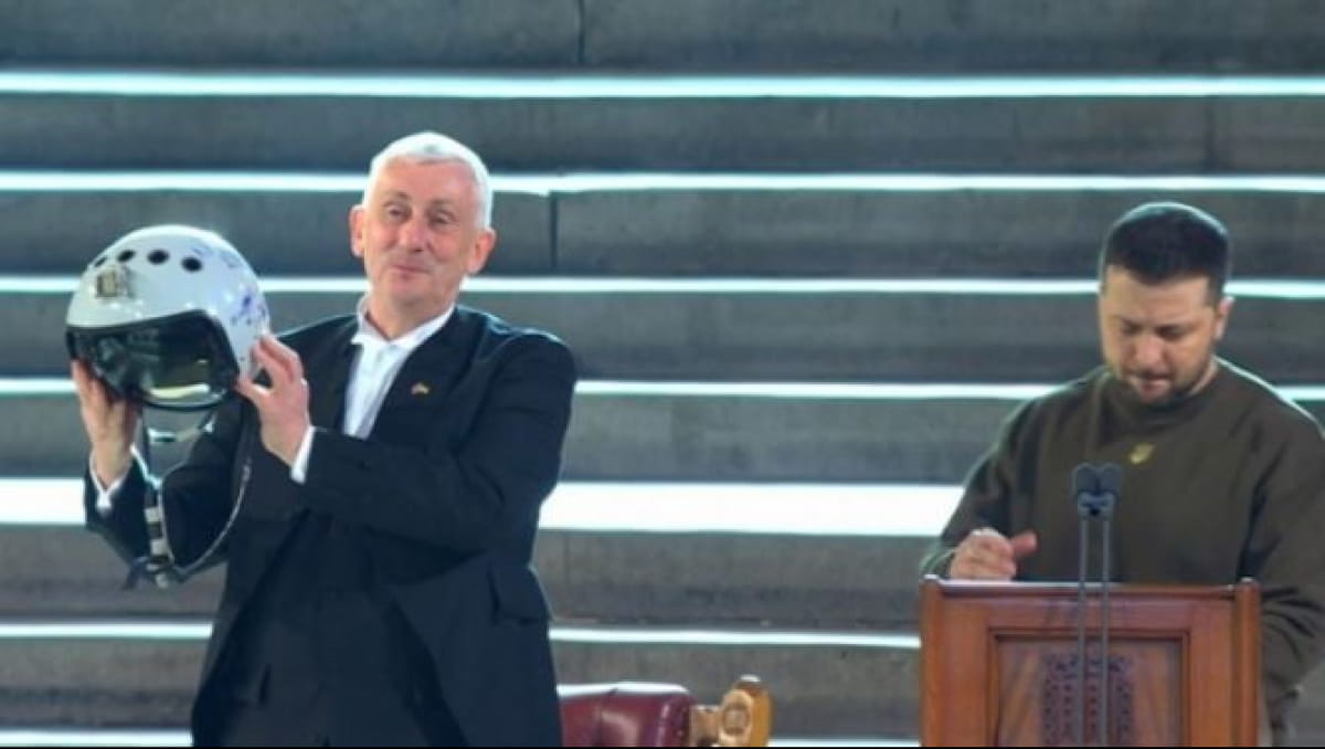 Водночас Зеленський подарував спікеру Палати громад Ліндсі Гойлу шолом українського пілота.