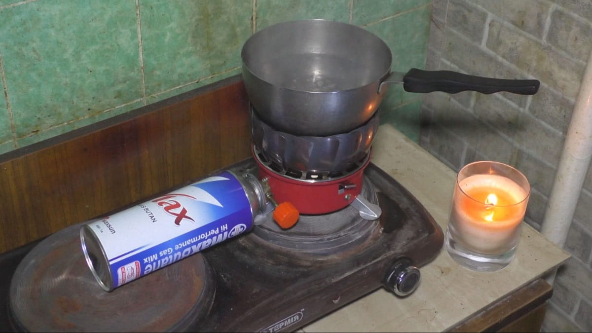 Використовує плитку регулярно, адже якщо й дають світло, то на кілька годин і вночі. Чоловік хизується: зробив собі запас газових балонів. Утім каже, готує виключно в безпечній зоні.
