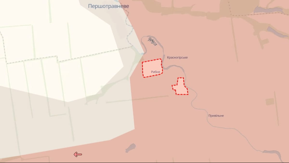 Згідно з даними мапи бойових дій, російські війська окупували Рибне.