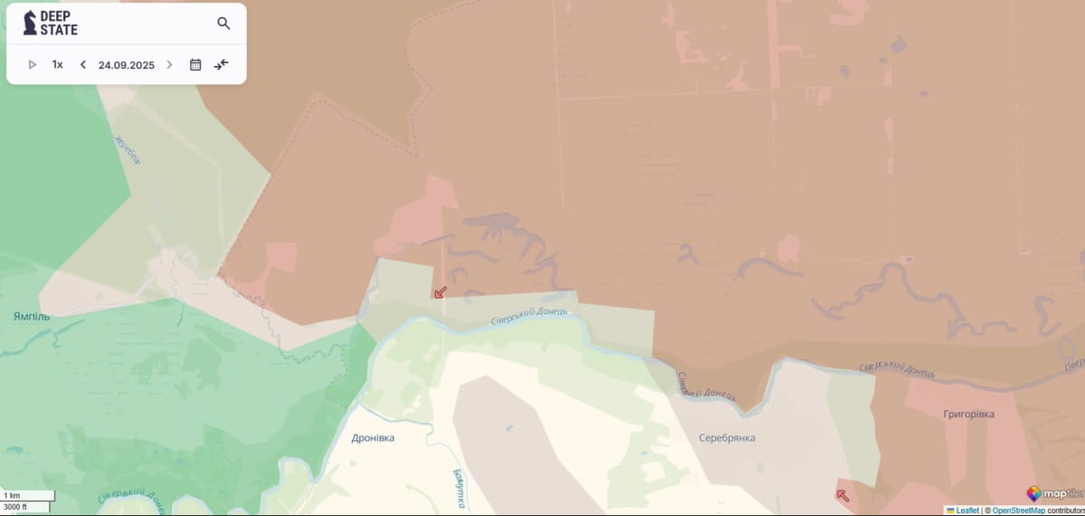 "Мапу оновлено. Ворог просунувся у Серебрянському лісництві (Луганщина) та поблизу Березового (Дніпропетровщина)", – йдеться у дописі.