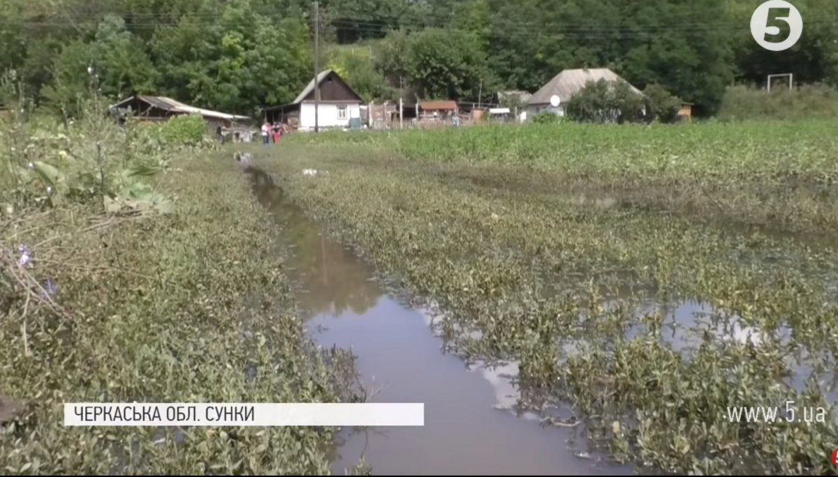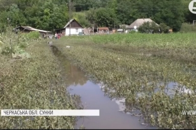 За кілька годин зливи затопило село Сунки на Черкащині. Городи опинилися під метровим шаром води, а єдину дорогу, яка веде в село, просто змили потоки. Люди чотири дні жили в повній ізоляції, чекали, доки висохне багнюка, а от автівки сюди заїхати досі не можуть, адже вода вимила півтораметрові ями.