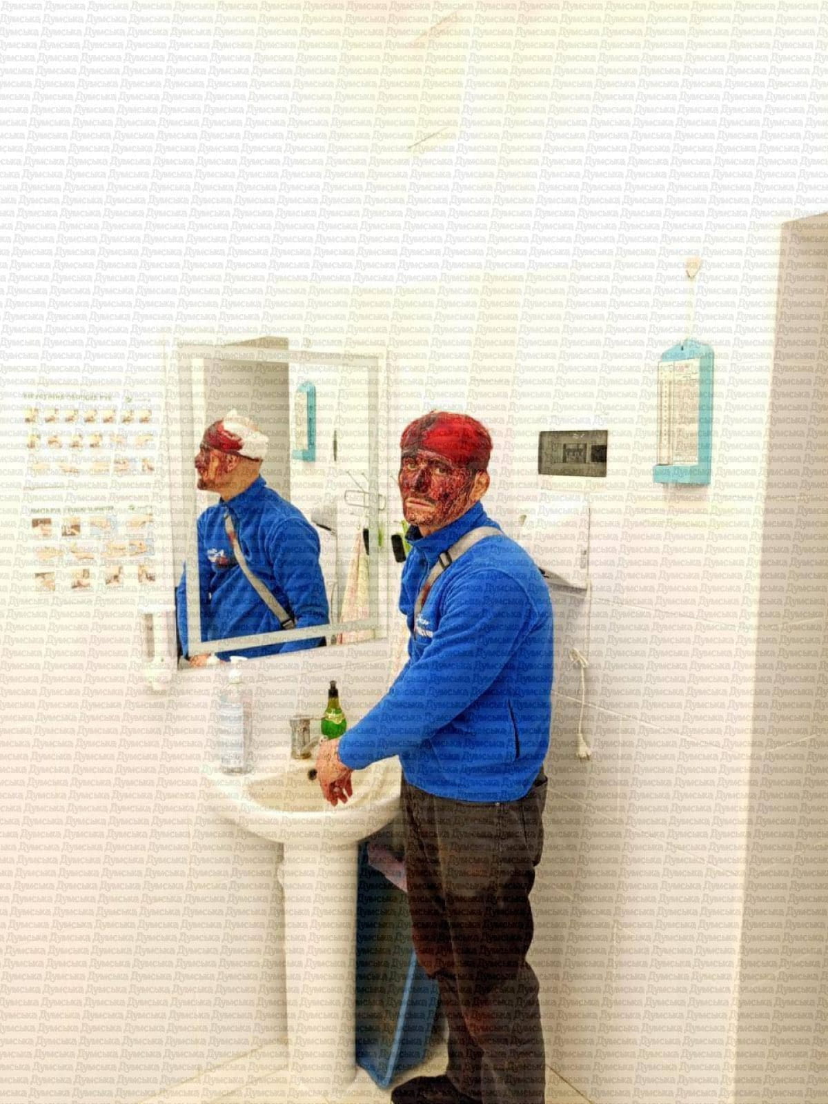 У соцмережах поширили фото чоловіка з перебинтованою головою та слідами крові.
