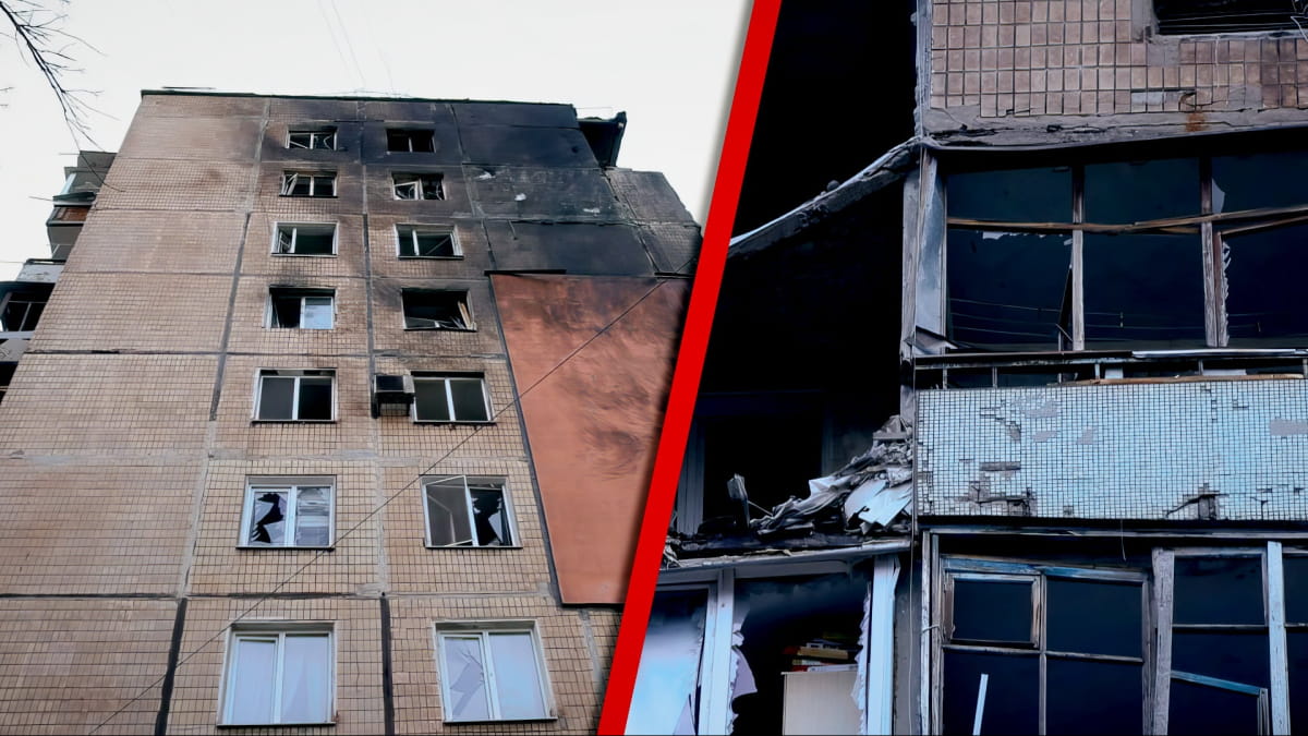 "Під час прильоту ми були в квартирі. Якраз відпочивали, спали. І почули гучний вибух після прильоту. Спочатку перший, а потім уже гуркіт після влучання в 9-й поверх. Я виходила надвір, подивитися, куди поцілили. І це справжнє диво, що без постраждалих, бо в тій оселі нікого не було. А сусіди поверхом нижче, на 8-му, сиділи в тамбурі, і їх не зачепило".