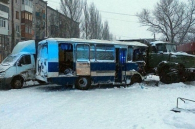 У районі міста Білицьке Донецької області зіткнулися військова вантажівка та автобус із шахтарями. Про це повідомив голова Незалежної профспілки гірників України Михайло Волинець на сторінці у Facebook.