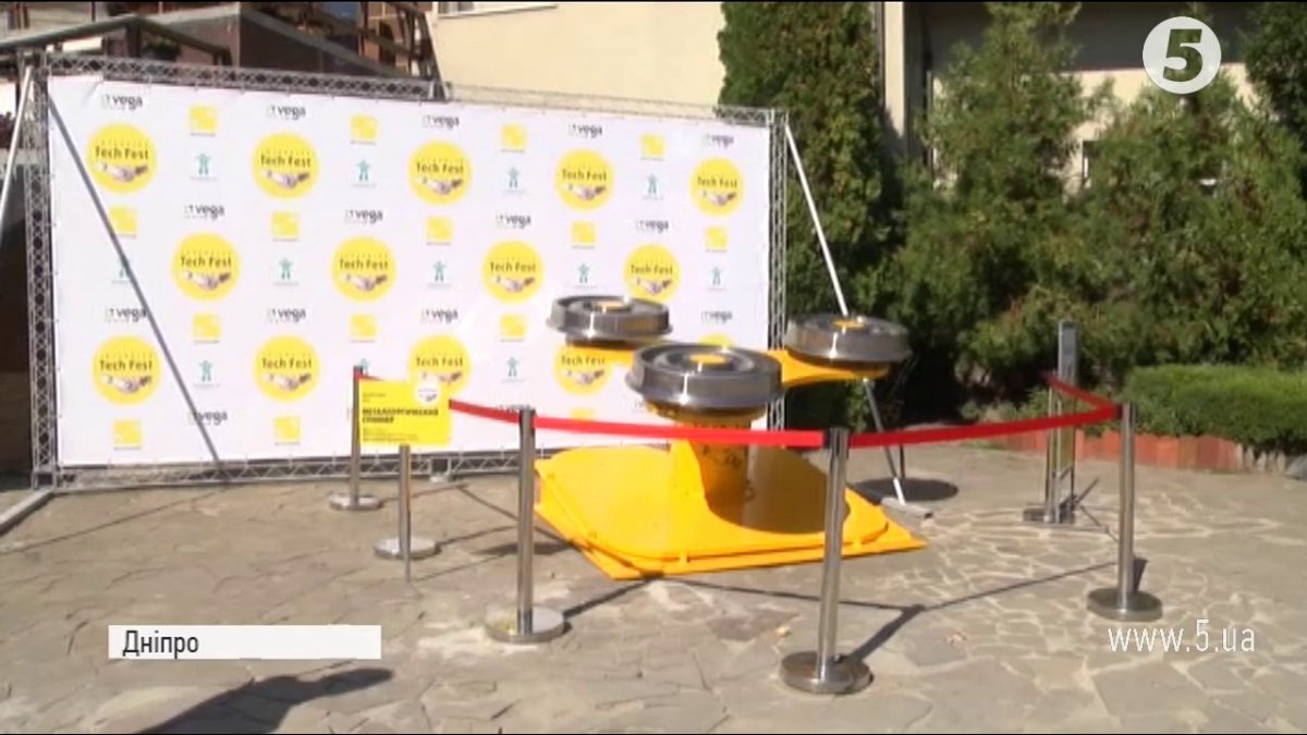 Обертові деталі вертуна виготовили інженери місцевого трубо-прокатного заводу з коліс залізничного потяга. Зафіксували спінер на металевій основі. Діаметр пелюсток тритонної іграшки - понад два з половино метри.