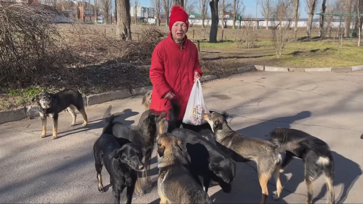 "Треба їсти їм давати і корма, і м'які. Я каші варю – казани. То було б добре, щоб туди ще м'який корм підмішувати. А то я купляю за свої гроші і спинки, і фарш собачий", – каже жителька Херсону Ольга.