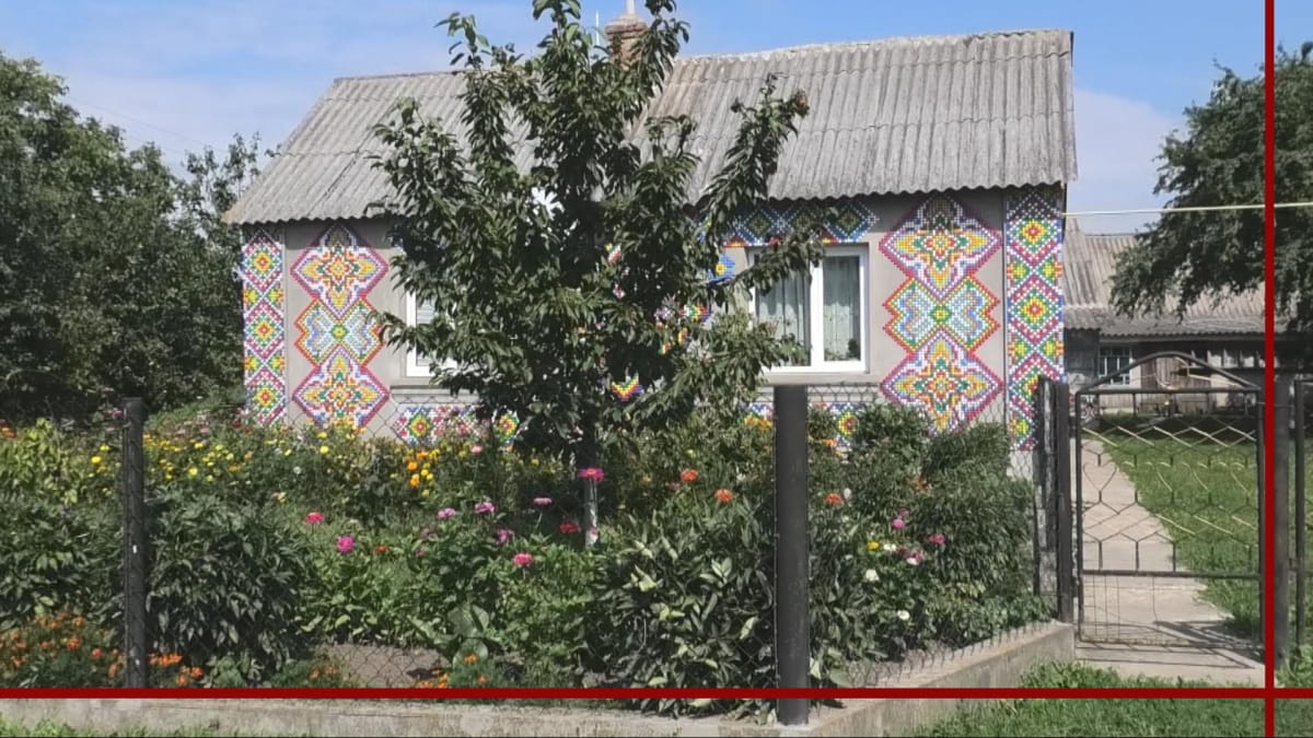 Хату Миколи Левчука у Древинях видно здаля. Оточена квітником, привертає увагу різнобарв'ям кольорів. До вишитого будинку ведуть дві доріжки з орнаментами. У візерунках – і літня кухня.