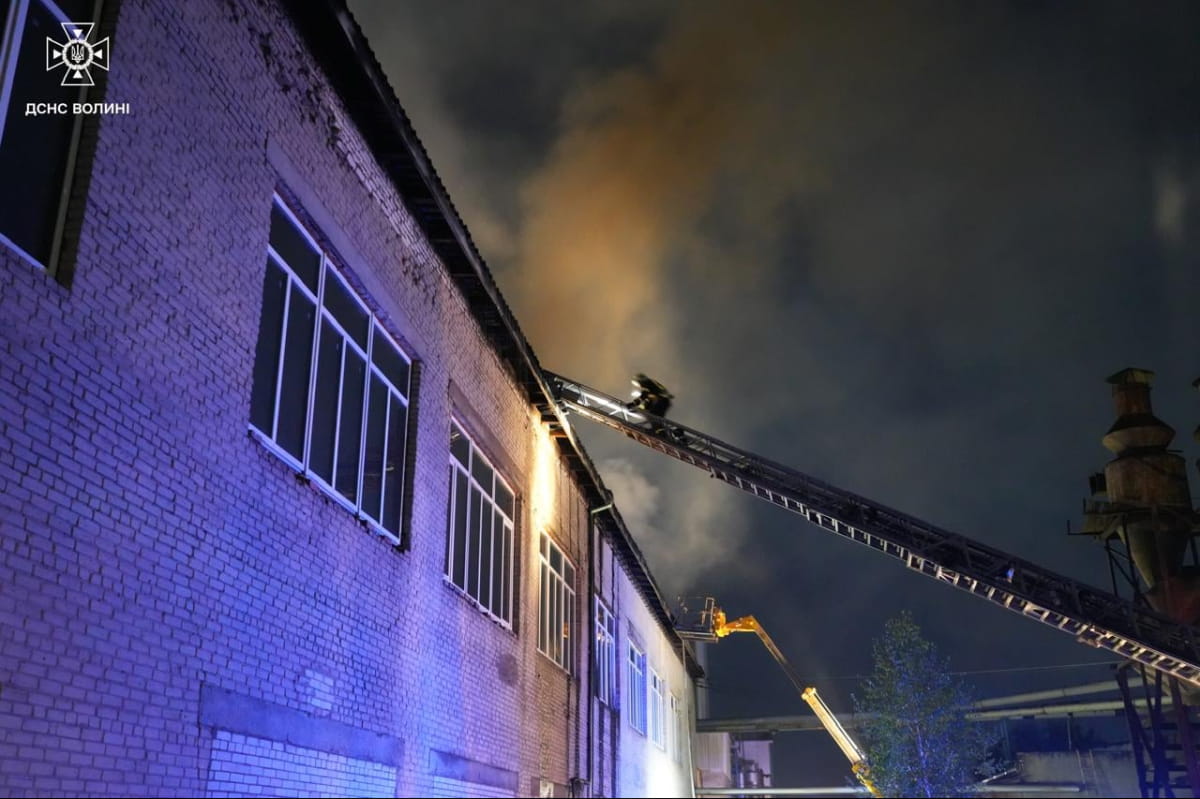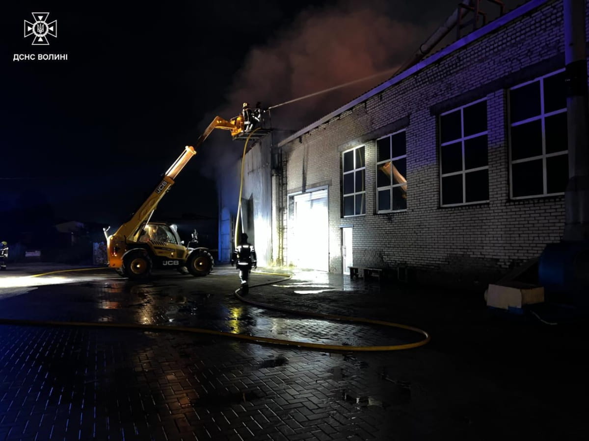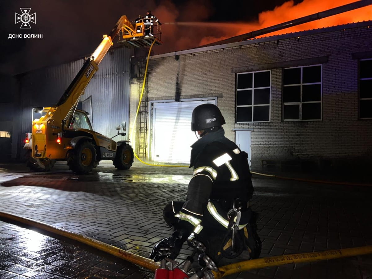 "У Луцькому районі зайнялося підприємство. На момент прибуття рятувальників площа пожежі становила 1000 кв. м. Вогнеборці працювали кілька годин. Пожежу вдалося ліквідувати вранці", – йдеться у дописі.