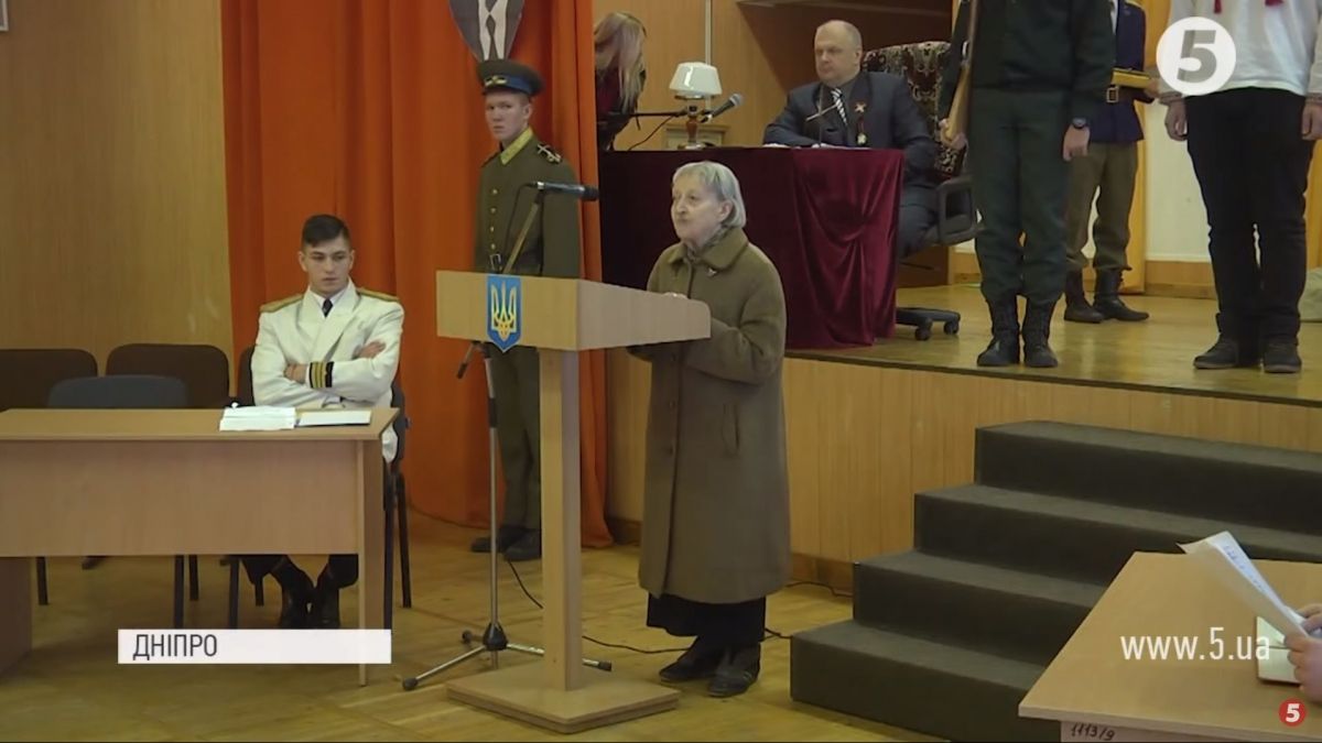 Як створювалася повстанська армія і що мала на меті – нині жінка розповідає курсантам Дніпровського ліцею з посиленою військово- фізичною підготовкою. Її туди запросили, щоб майбутні військові чули, як творилася історія України з вуст учасників тих подій.
