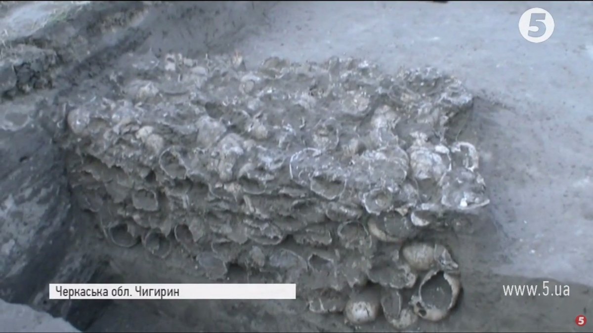 Дві сотні людських черепів відкопав житель Черкащини на власному городі. Незвичайну знахідку виявили у місті Чигирин. Чоловік копав траншею для прокладення комунікацій, проте завершити не вдалося, екскаватор ковшем почав викидати людські рештки. Шокований селянин звернувся до археологів. Що вразило науковців та звідки з'явилися черепи на городі – у сюжеті "5 каналу".