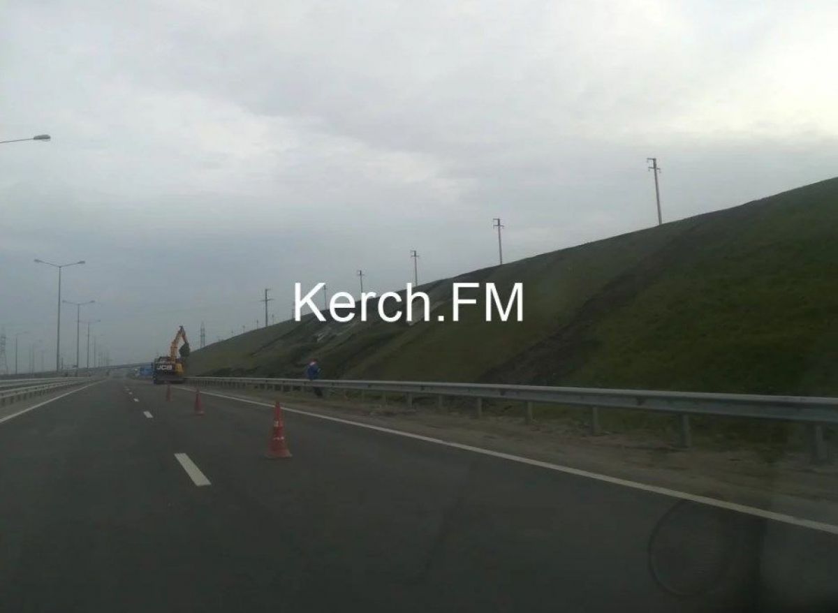 На автопідходах до Кримського мосту штучно створені насипи обвалилися через снігопади. Робітники за допомогою спецтехніки прибирають землю. Про це повідомляють очевидці Керч.ФМ.