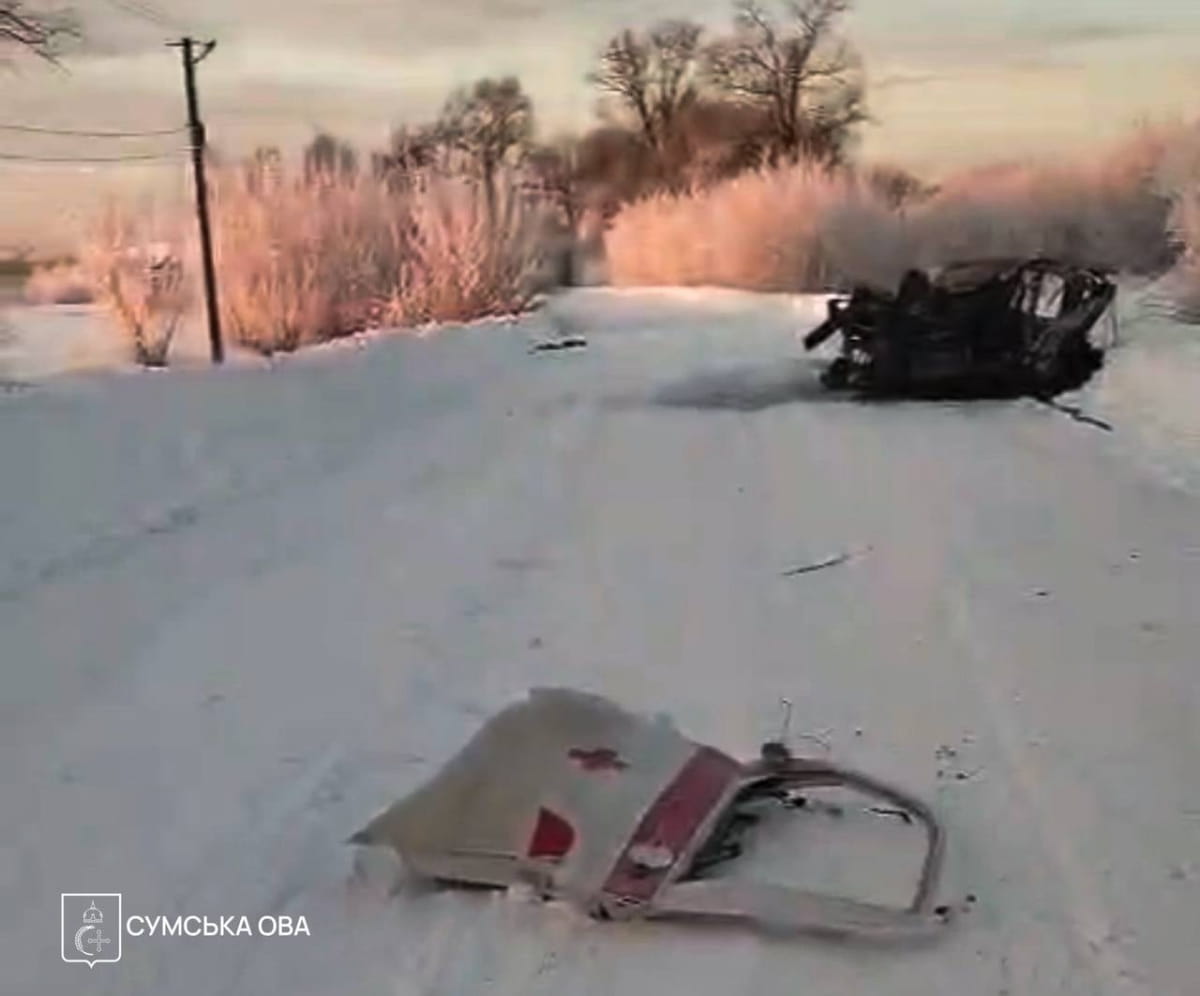 "Подружжя надавало допомогу 17-річному та 24-річному хлопцям, які підірвалися на невідомому вибуховому пристрої в селі Зноб-Трубчевська. Евакуювавши поранених, вони вирушили каретою швидкої допомоги до районного центру. У селі Чигин автомобіль атакував ворожий безпілотник. Унаслідок удару Сергій, Христина та двоє постраждалих загинули на місці", – повідомили у ГУ НП у Сумській області.