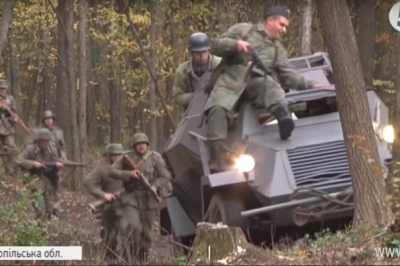 "Повстанці хочуть вибити німців з цієї хатини, вони більшими підрозділами сюди приходять на перехрестя цих доріг, починається бій, але партизани розуміють, що сили не рівні і вони розуміють, щоб зберегти особовий склад краще відійти до ліску почекати інші підрозділи УПА, і тоді вжке чисельними силами оточити німців", - розповідає голова товариства пошуку жертв війни "Пам'ять" Любомимир Горбач.