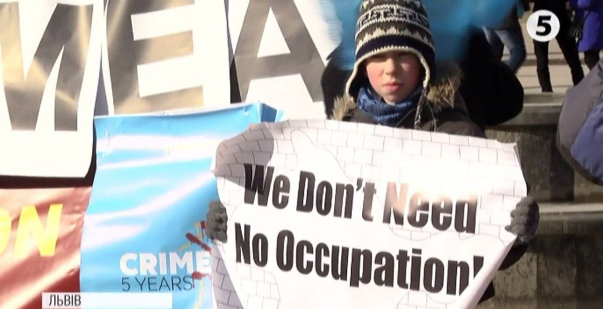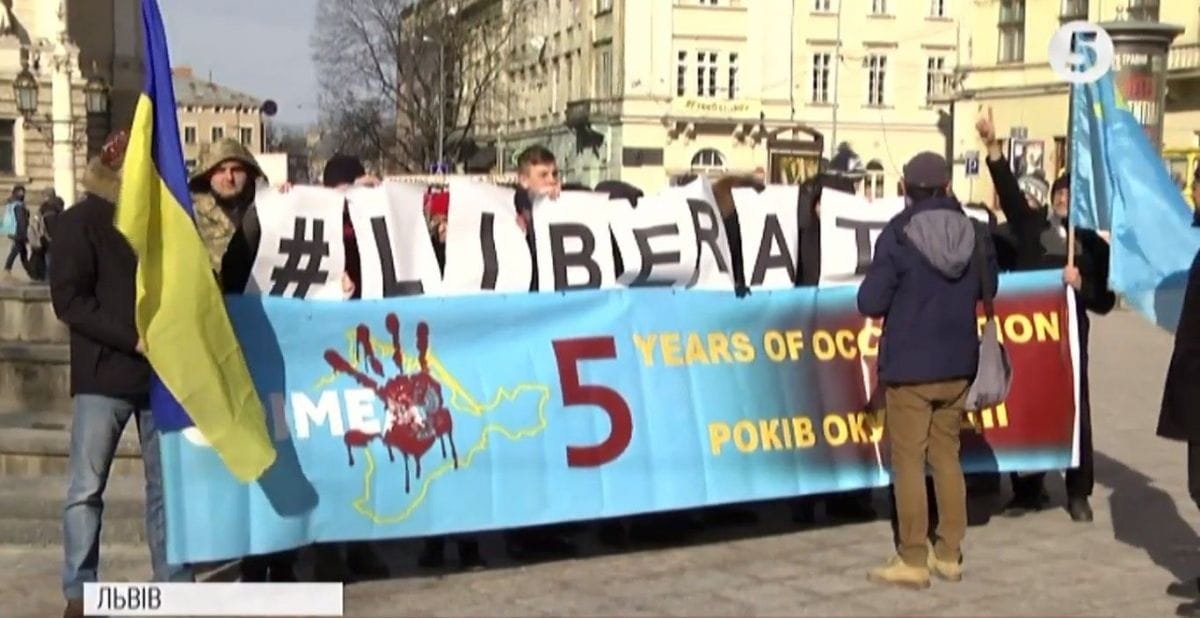 Про п’яту річницю анексії Кримського півострова згадали у Львові. Зо два десятки переселенців з Криму та Донбасу вийшли на центральну площу міста та влаштували мовчазну акцію "5 років окупації", повідомляє "5 канал".