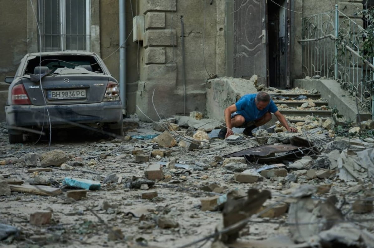 росія атакувала 19 крилатими і балістичними ракетами місто Одесу. Архітектурні пам'ятки ЮНЕСКО у центрі Одеси зруйновані. Автівки також пошкоджені. Бетон з арматурою від пошкоджених будинків розліталися і зносили все на своєму шляху.