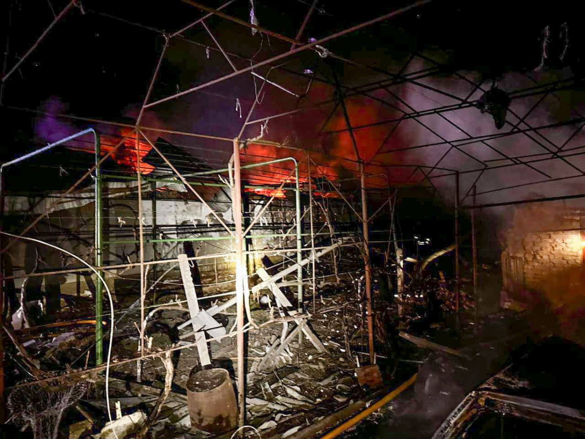 "Внаслідок влучань сталося руйнування трьох одноповерхових житлових будинків, господарчої споруди з подальшим загорянням та 7 автомобілів", – ДСНС.
