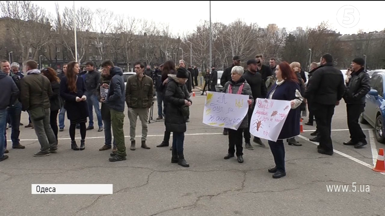 В Одесі мітингують проти обрання нового заступника голови обласної адміністрації. За результатами конкурсу переміг колишній правоохоронець Олександр Терещук, передає "5 канал".