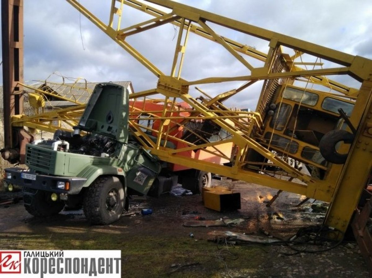 Сильний вітер зірвав кріплення на конструкції спецтехніки. Через це конструкція впала на кабіну вантажівки, всередині якої були двоє людей. Попередньо – жителі Львівщини. Вони загинули на місці. Діставати тіла рятувальникам довелося за допомогою гідравлічних ножиць.