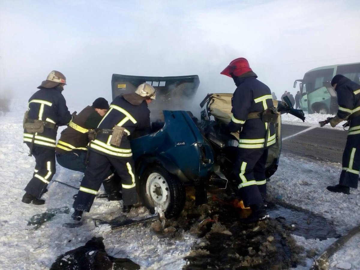 Засніжена траса стала причиною смертельного ДТП поблизу Бердянська в Запорізькій області. Як повідомляє прес-служба ДСНС, пасажирський автобус, який прямував із Маріуполя до Харкова, зіткнувся з "Нивою".