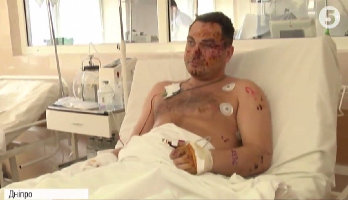 Про стан поліцейського розповів головний лікар Дніпропетровської обласної лікарні ім. Мечникова Сергій Риженко: "Важка черепно-мозкова травма. Осколками розбите обличчя і перелом стегна. У 61-му військово-медичному госпіталі йому поставили апарат (Ілізарова). Перелом серйозний, поздовжній. Доведеться більше місяця перебувати в лікарні".