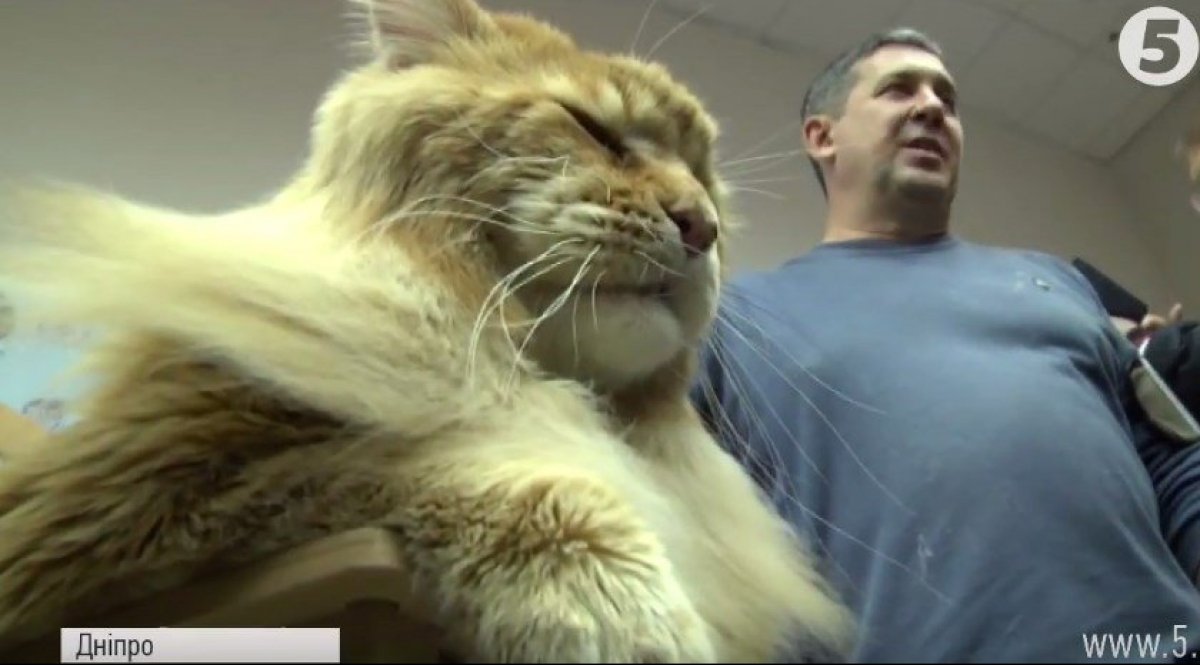 Завдовжки понад метр та завважки – 12 кілограмів. Найбільший в Україні кіт мешкає у Дніпрі. Гіганта вже зареєстрували у книзі рекордів України і продемонстрували на міжнародній виставці. Наталія Світлова бачила великого та рудого.