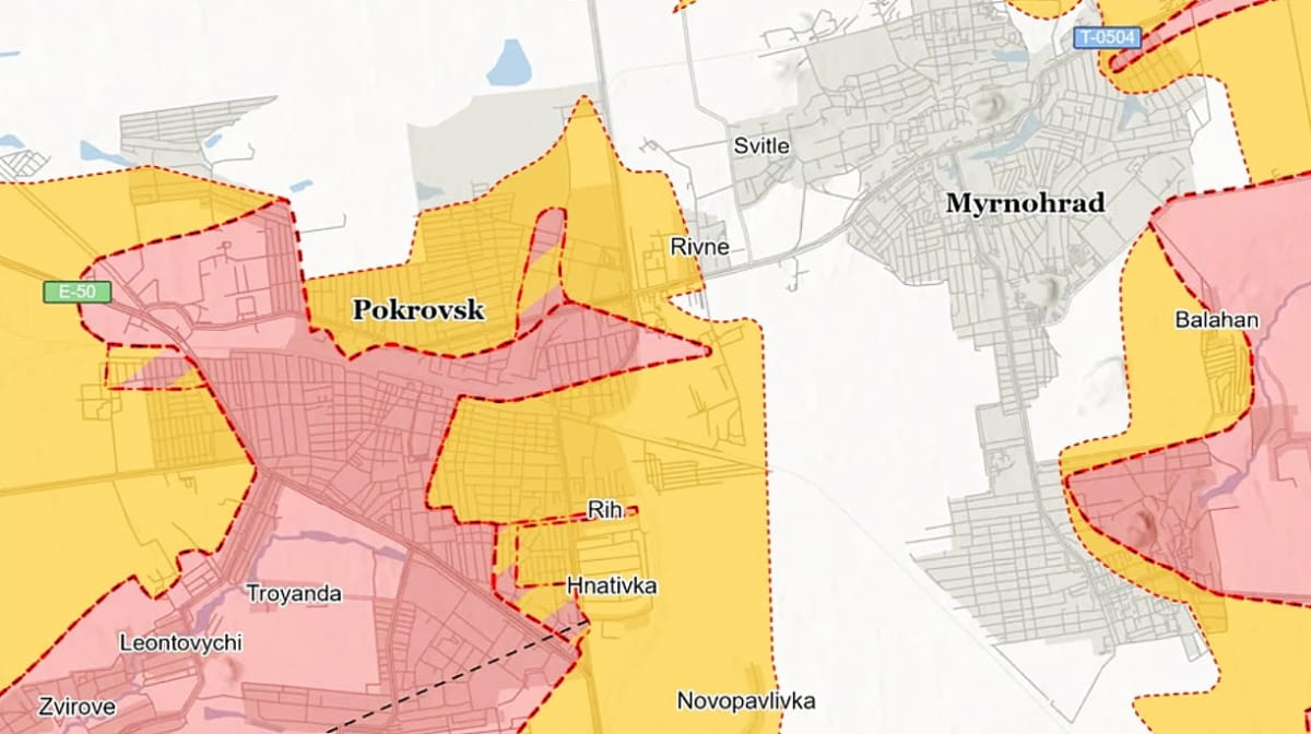 Ситуація в районі Покровська та Мирнограда Донецької області залишається складною, оскільки українські війська борються за утримання флангів так званої "кишені", а російські окупаційні війська продовжують наступати в цьому районі.
