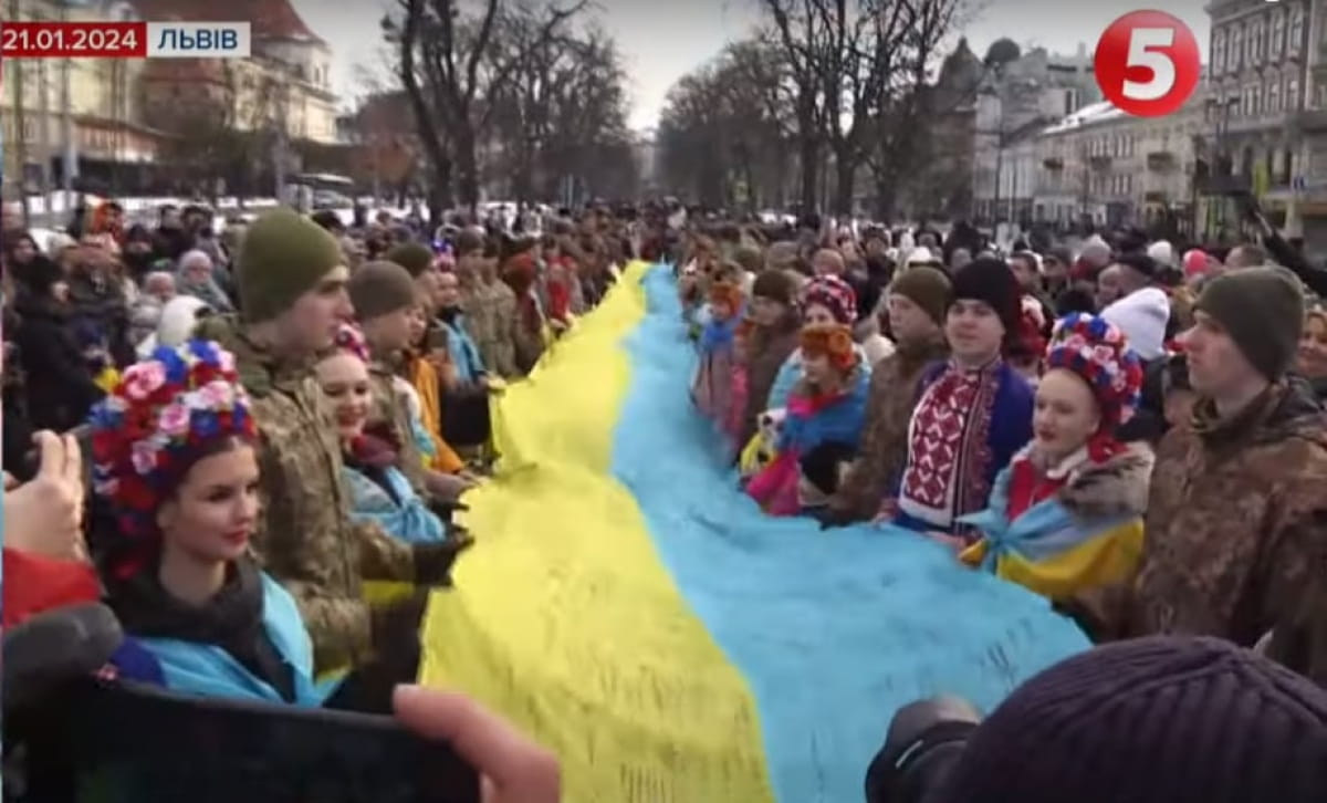 У центрі Львова з нагоди Дня Соборності України та 105-ї річниці Акту УНР та ЗУНР встановили національний рекорд, розгорнувши 20 метровий прапор з підписами військових та школярів зібраних по всій Україні та на лінії фронту.