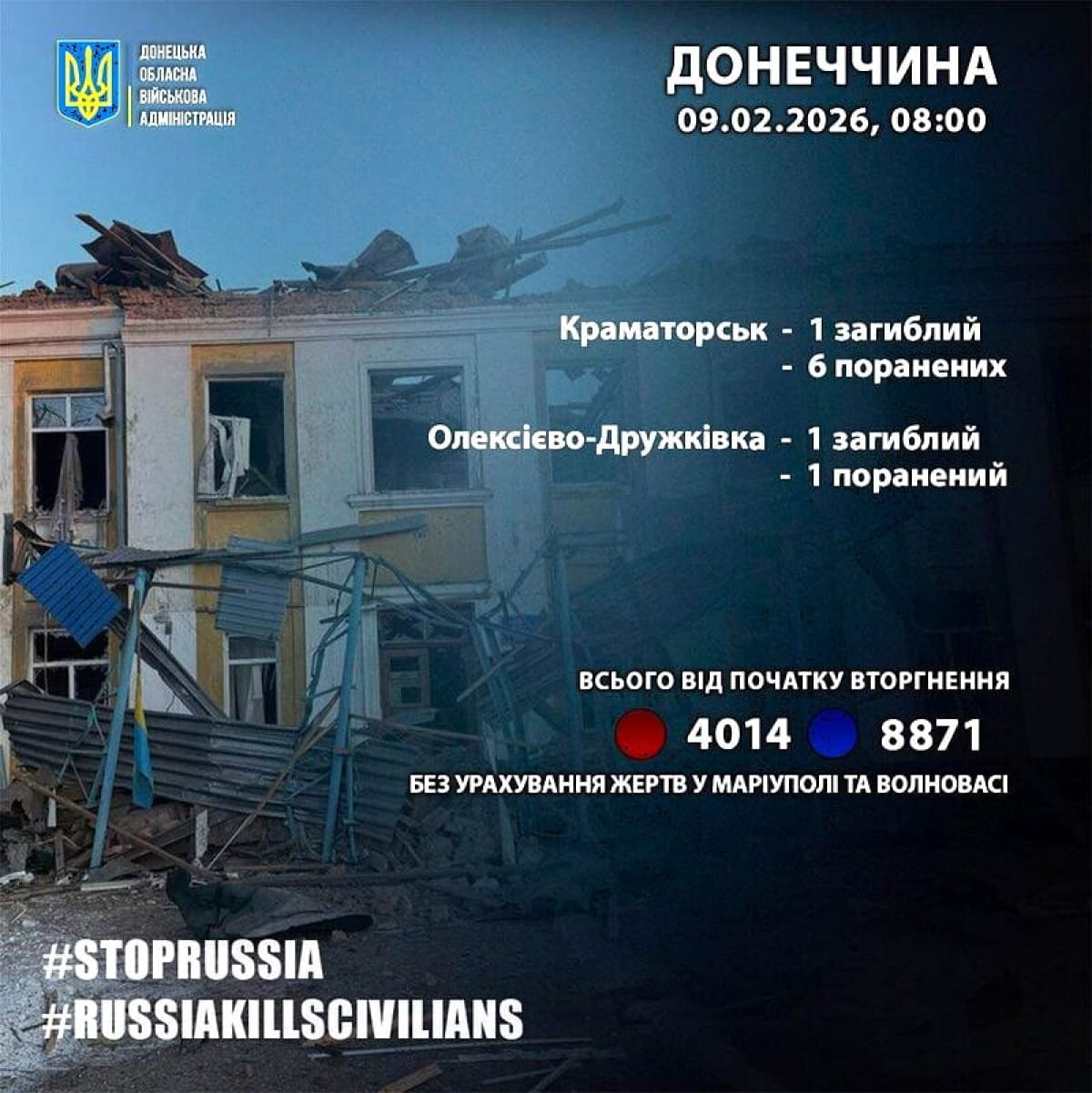Протягом минулої доби внаслідок російських обстрілів загинуло двоє людей – у Краматорську та Олексієво-Дружківці.