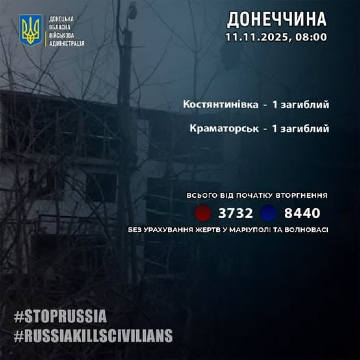 Минулої доби росіяни вбили двох жителів Донеччини – у Краматорську й Костянтинівці.