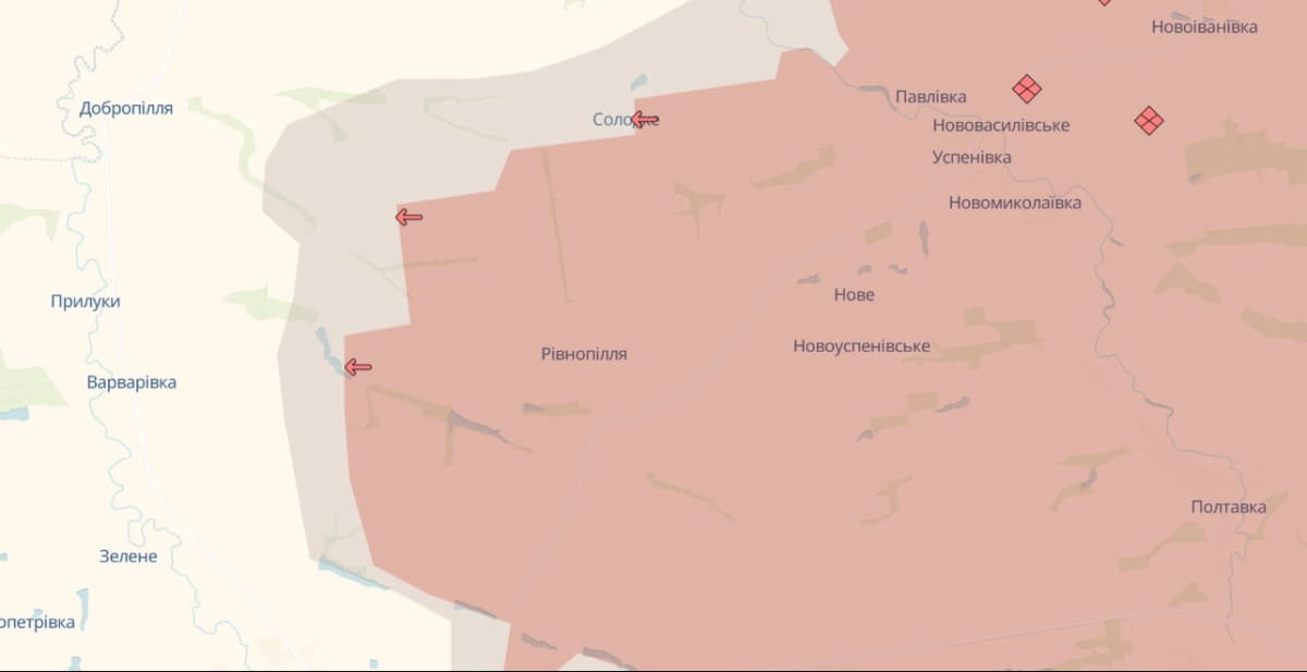 "Мапу оновлено. Ворог просунувся поблизу Рівнопілля, Гуляйполя (Запорізька обл.), Ступочок (Донецька обл.) та Дворічанського (Харківська обл.)", – йдеться у дописі.