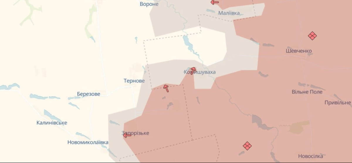Ворог зазнав втрат і відступив у районах Мирового та Новоселівки, проте намагався просунутися біля Комишувахи та Миролюбівки. Про це повідомляють аналітики DeepState.