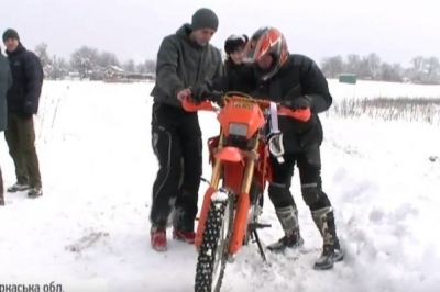 Стартують мотогонщики у 30-сантиметровому снігу, а тому їдуть майже наосліп. Киянин Сергій Лужевський улітку випробовує себе та мотоцикл на бездоріжжі, а взимку рушає кататися по снігу.