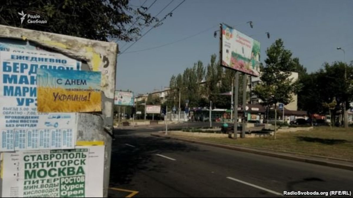 У тимчасово непідконтрольному Україні Донецьку розклеїли проукраїнські листівки з привітаннями до Дня Незалежності України. Про це повідомляє "Радіо Свобода Донбас. Реалії".