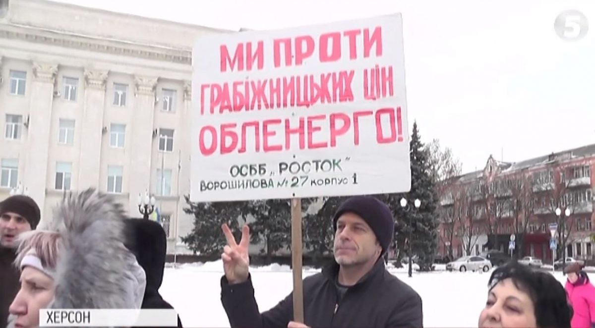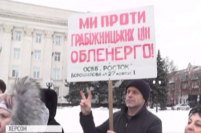 Понад 200 керівників об'єднань співвласників багатоповерхових будинків прийшли під стіни обласної адміністрації в Херсоні. Учасники мітингу вимагали скасувати підвищення цін на електроенергію для ОСББ. Новий тариф набув чинності від початку року, передає "5 канал".