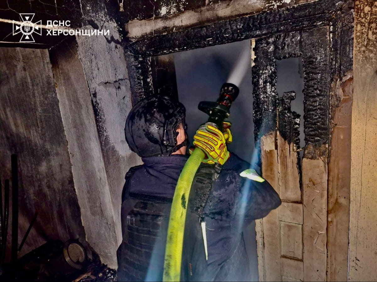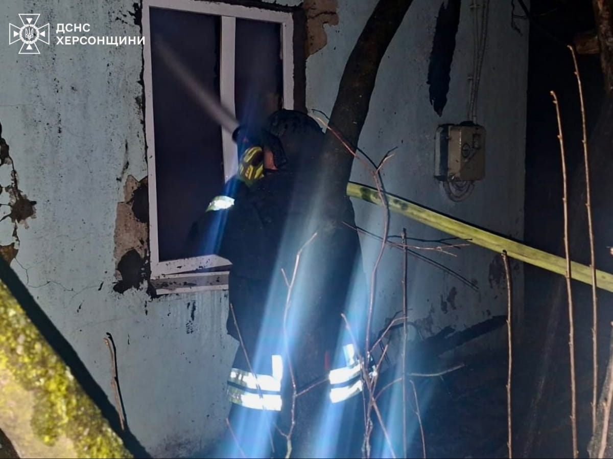 У ДСНС повідомили, що російські дрони атакували приватні будинки у селах Любимівка та Хрещенівка Бериславського району. Там виникли пожежі.