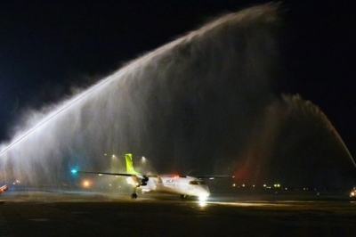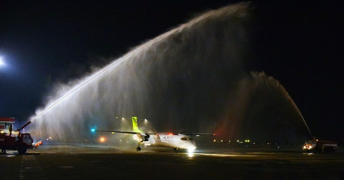 "Перший рейс, який привіз до Одеси 66 пасажирів з Латвії, традиційно зустріли водним салютом", – йдеться в повідомленні.