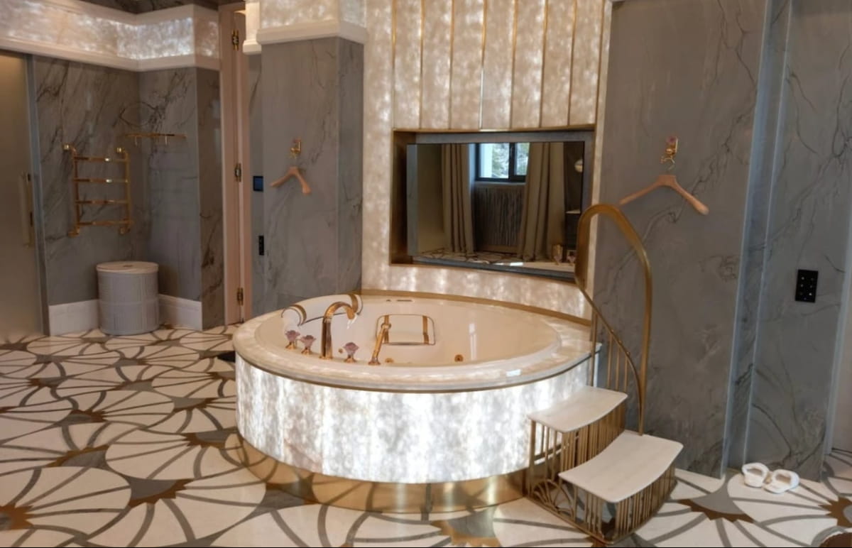 Розслідувачі зазначають, що головний будинок має площу понад 9000 м², будинок для прийому гостей – майже 5000 м². Також на ділянці є окремі будівлі для персоналу, технічні споруди і новий вертолітний майданчик. Унизу власна набережна, пірс і штучний пляж з білим піском.