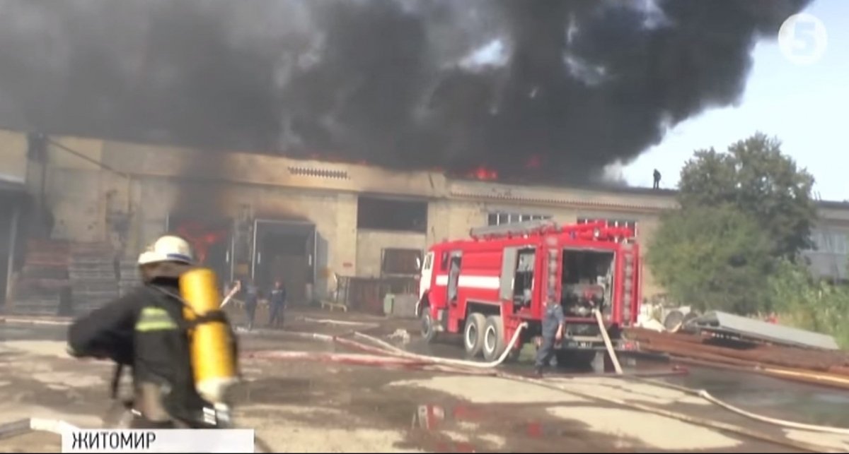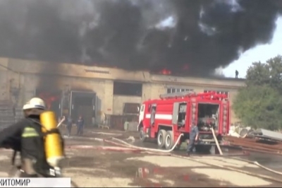 Масштабну пожежу в Житомирі локалізували – вигоріло три тисячі квадратних метрів картонного комбінату.