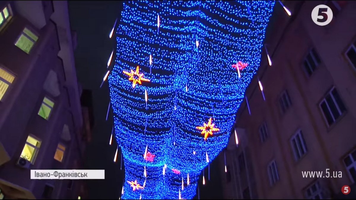 На Франківщині цьогоріч ялинка – без жодної іграшки та гірлянд. Утім, від цього вона не менш яскрава. На 18-метровій штучній красуні тисячі різнокольорових вогників утворюють 3D-візерунки, які постійно змінюються. Святковою ілюмінацією засяяло і середмістя Франківська. Вона у скверах та вздовж центральної пішохідної вулиці. А вже незабаром тут планують встановити ще й арки з гірлянд.