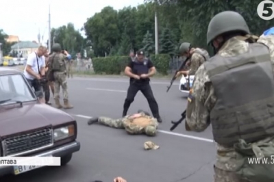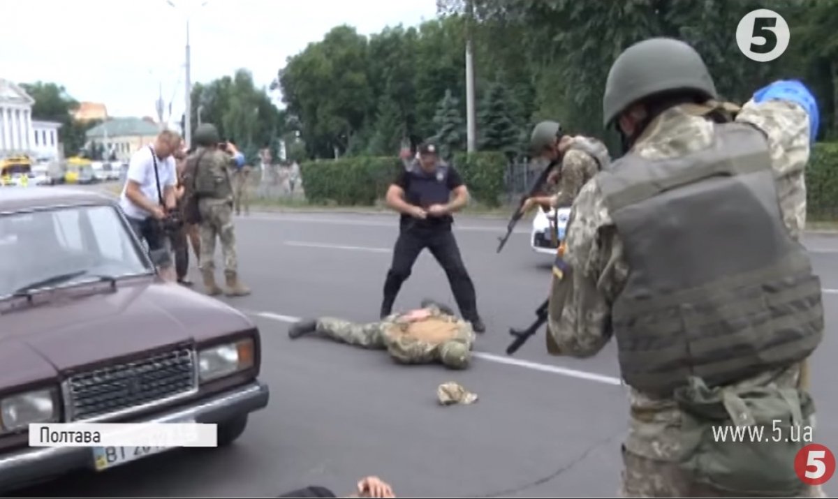 На порозі Полтавської міськради четверо молодиків намагаються прорватися через кордон охорони. Та військові побачили, що це лише провокація, аби відволікти їх від нападу диверсантів з іншого боку. Тому вони швидко блокують входи і викликають підкріплення. За лічені хвилини на місце прибувають кілька нарядів поліції. На затриманих надягають кайданки, їх тримають під прицілом.