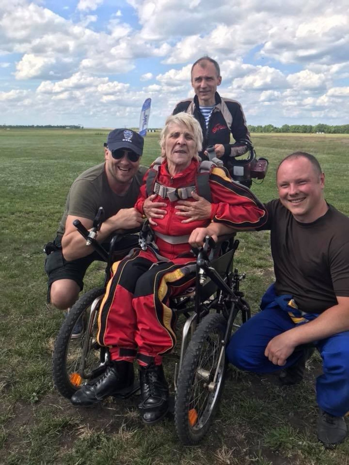 "На вихідних відпрацьовували парашутні стрибки в ДЗ "Майське". І тут привозять бабусю на візку. У неї день народження і вона замовила собі подарунок "тандем-стрибок". Їй 71 рік. Стрибок з інструктором з висоти 4200 метрів!!! Завжди розумієш, що сильних духом людей не зупинити", – наголосив Троян.