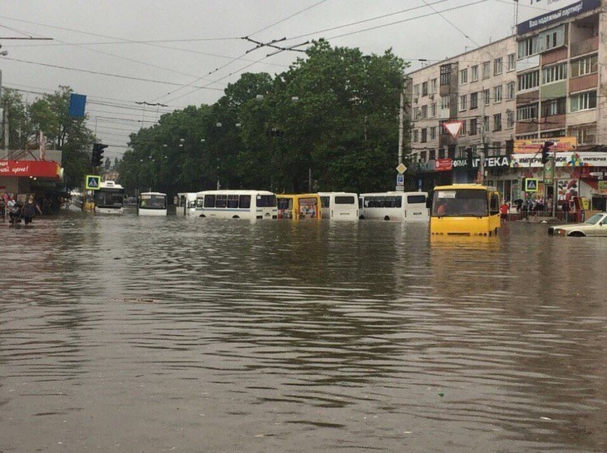 Через те, що зливостоки не справлялися з дощовими потоками, вулиці та місцевий вокзал опинився "під водою".