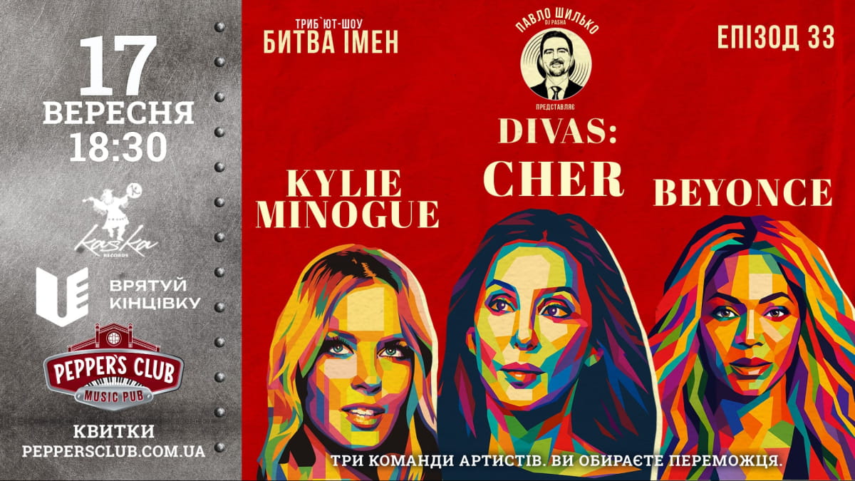 17 сентября шоу Павла Шилько (DJ Паши) "Пашина 20КА. Битва имен" в Pepper's Club возвращается в формате DIVAS BATTLE. На этот раз в центре – три девы, три иконы, три стиля: Kylie Minogue, Cher и Beyoncé.