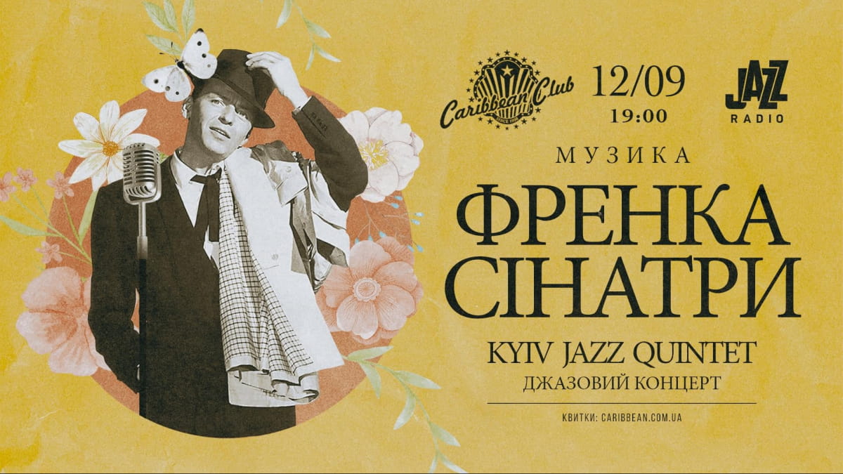 12 сентября в Caribbean Club прозвучит концертная программа, посвященная музыке Фрэнка Синатры. В исполнении Kyiv Jazz Quintet прозвучат хиты – от романтической "Fly Me to the Moon" до знаковой "New York, New York".