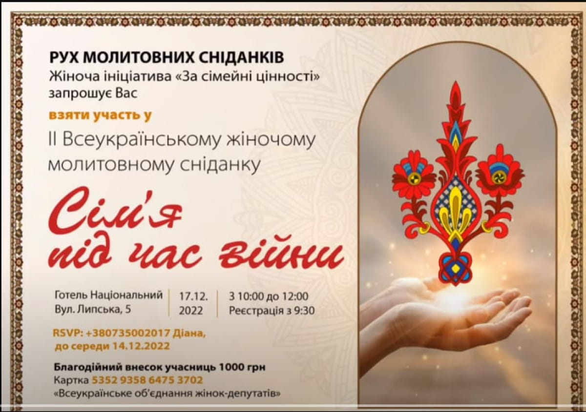 17 декабря 2022 года, в день святой Варвары – покровительницы женщин, в канун Рождества, состоится II Всеукраинский женский молитвенный завтрак "Семья во время войны".